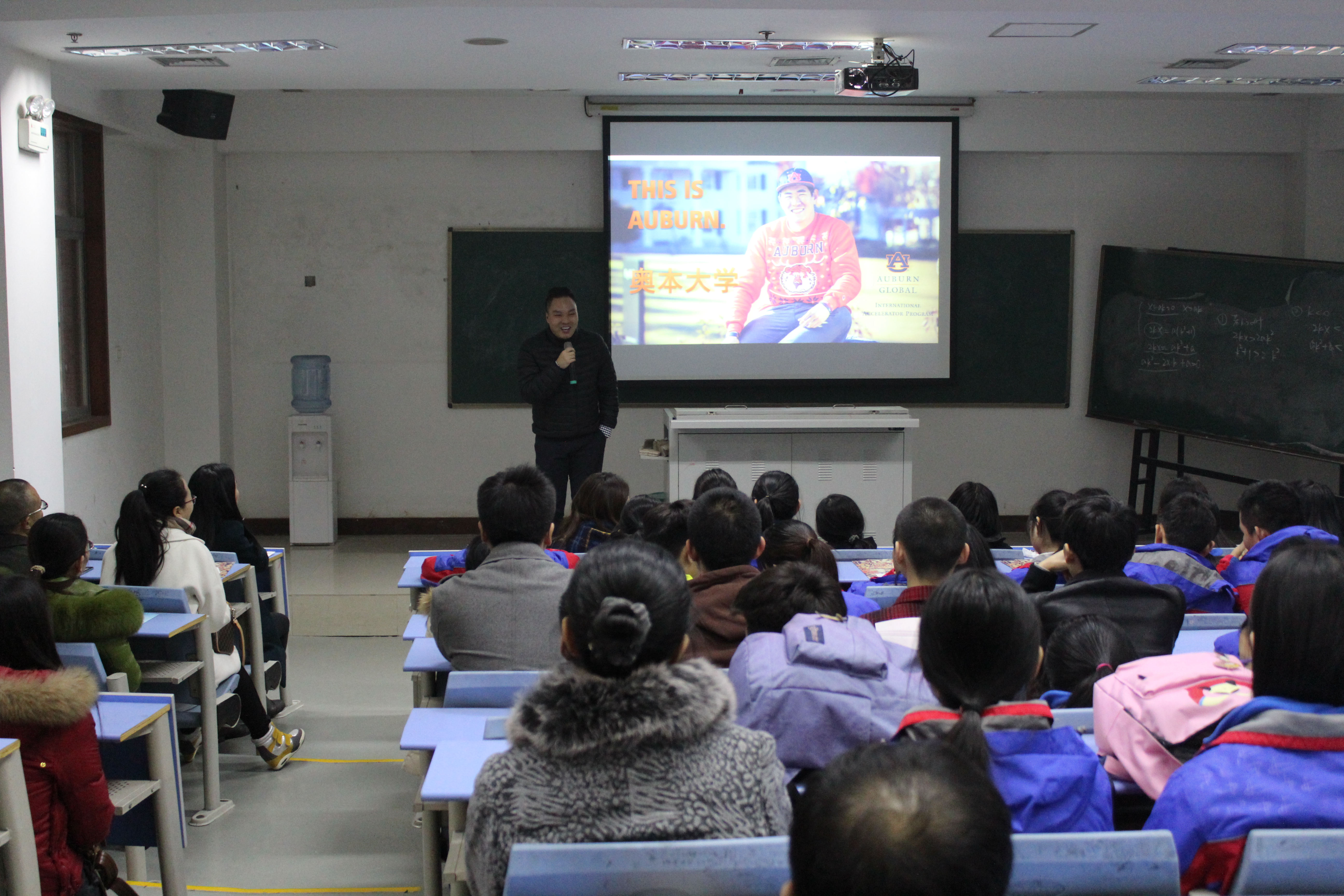 2016年12月2日,下午4点半,在西安中学东阶梯教室,来自美国奥本大学(Auburn University)对我集团西中国际部学生进行了招生宣讲。奥本大学(Auburn University,简称AU或Auburn)于1856年建校,位于亚拉巴马州的奥本大学城,距美国东南部的最大城市亚特兰大约一个半小时车程,是该州最大的大学,也是该州第一个录取黑人学生的传统白人大学,在美国南部享有盛誉的老牌百年名校之一。奥本大学拥有自己的民用机场,也是全美为数不多的几所被政府同时授予土地(land-grant)、海域(sea-grant)和太空(space-grant)用于科研工作的大学。